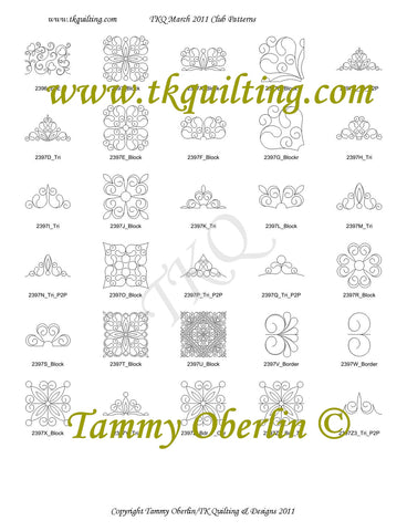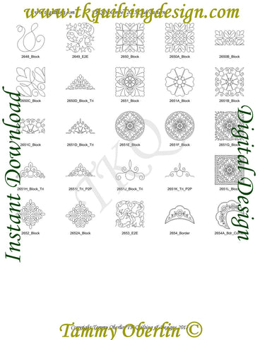 Printed patterns for long arm panto graph, hand or domestic machine quilting, hand embroidery, applique or coloring are also available. They are full size patterns unless otherwise noted and printed on high quality paper. Designs by Tammy Oberlin and roll patterns by Anita Shackelford!