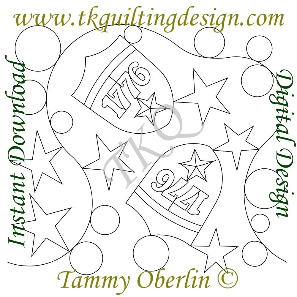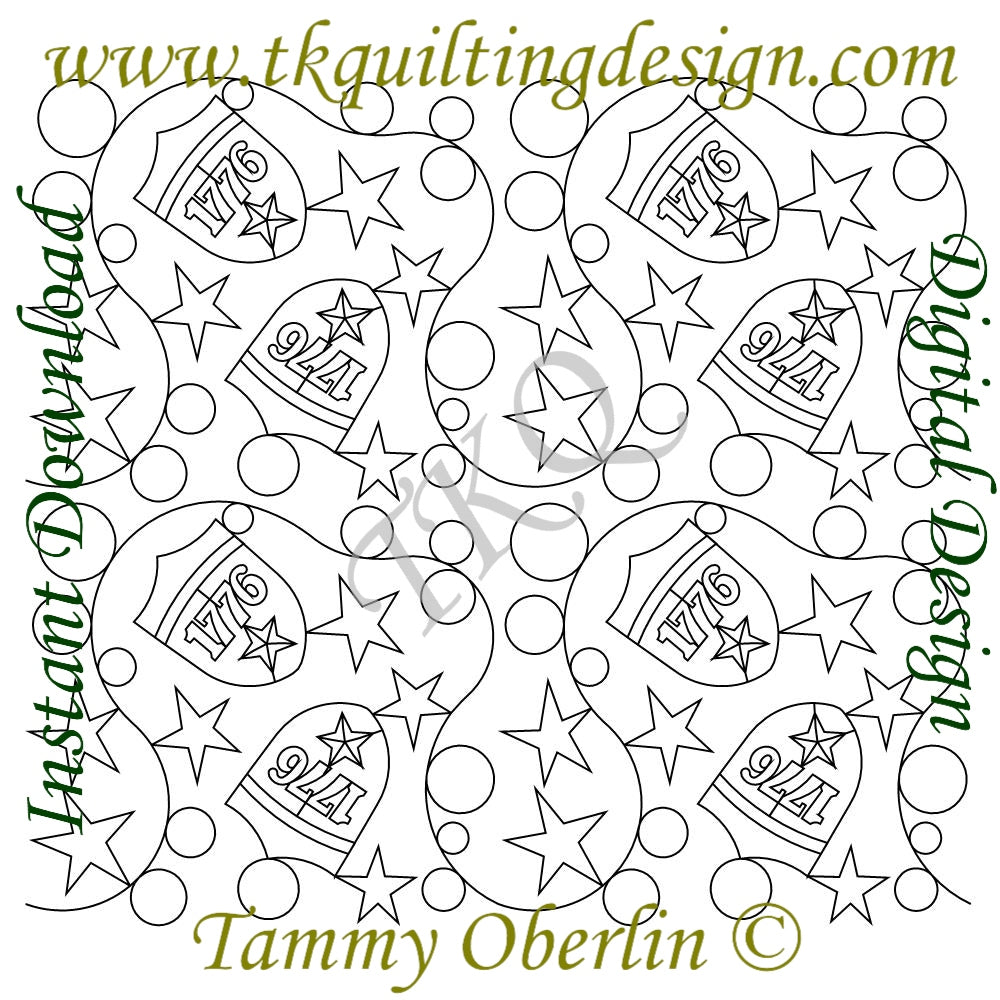 Patriotic, allover, E2E, computerized quilting design.