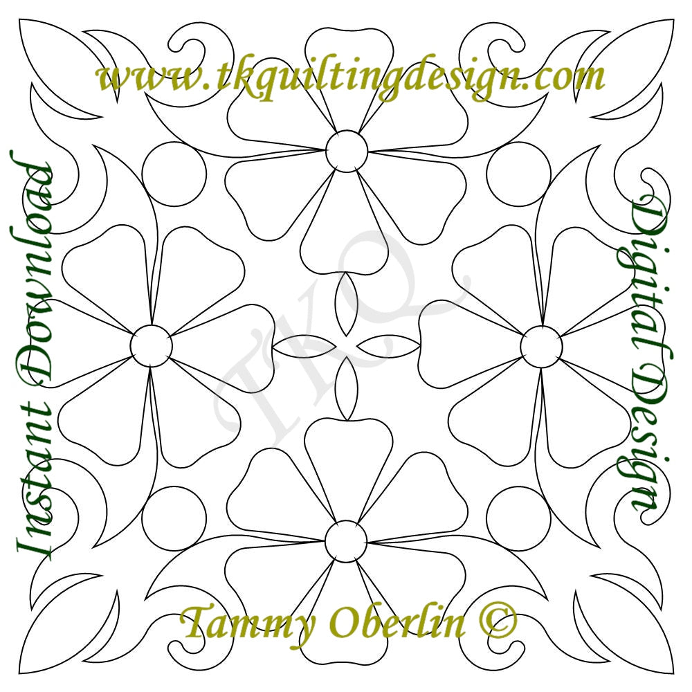 Digital quilting pattern by Tammy Oberlin-Bramer. For use with computerized quilting systems. Designed as a block pattern. Designed at 10" x 10", but can be easily re-sized.