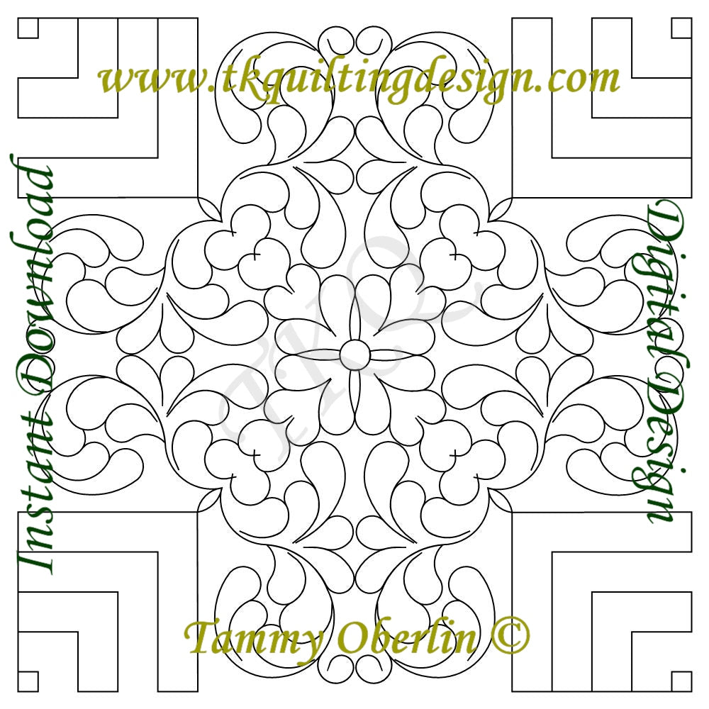 Digital quilting pattern by Tammy Oberlin-Bramer. For use with computerized quilting systems. Designed as a block pattern. Designed at 14" x 14", but can be easily re-sized.