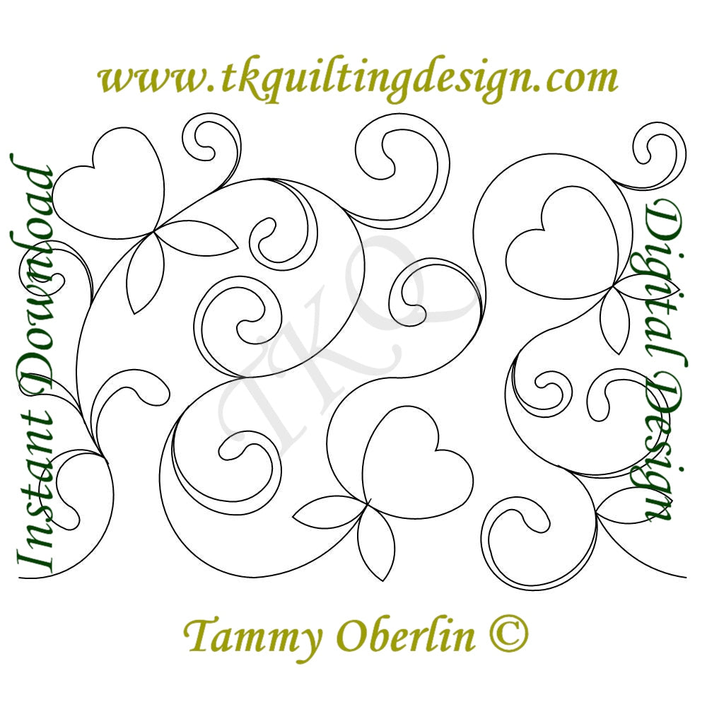 Digital quilting pattern by Tammy Oberlin-Bramer. For use with computerized quilting systems. Designed as a continuous edge to edge or allover pattern. Designed at 18.6" W x 13.28" H, but can be easily re-sized.