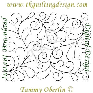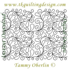 Digital quilting pattern by Tammy Oberlin-Bramer. For use with computerized quilting systems. Designed as a continuous edge to edge or allover pattern. Designed at 18" x 14.07", but can be easily re-sized. Second image shows repeated pattern. Retraces on the curls.