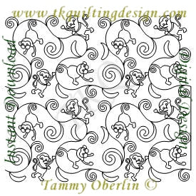 Digital quilting pattern by Tammy Oberlin-Bramer. For use with computerized quilting systems. Designed as a continuous edge to edge or allover pattern. Designed at 17.99" x 16.23", but can be easily re-sized. Second image is repeated pattern.